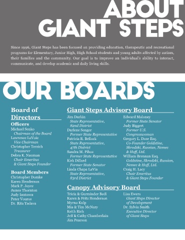 Since 1996, Giant Steps has been focused on providing education, therapeutic and recreational