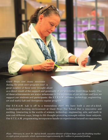 Photo - February 16, 2017: Dr. Sylvia Smith, executive director of Giant Steps, puts the finishing touches