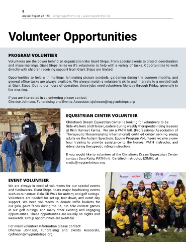 Volunteers are the power behind an organization like Giant Steps. From special events to project coordination