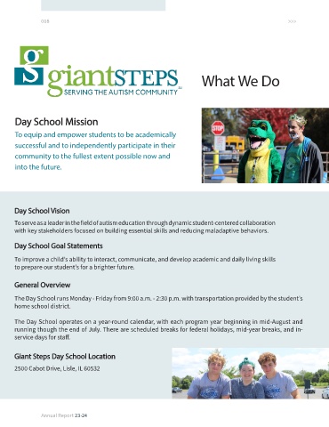 The Day School operates on a year-round calendar, with each program year beginning in mid-August and