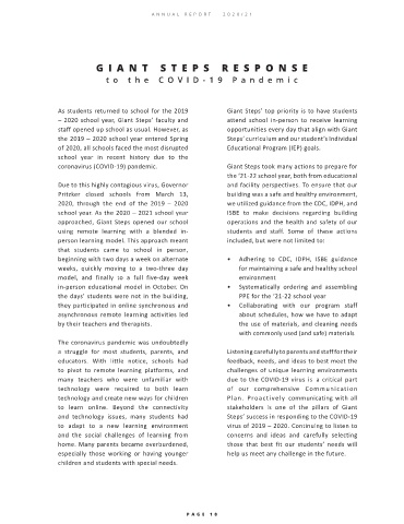 – 2020 school year, Giant Steps’ faculty and attend school in-person to receive learning