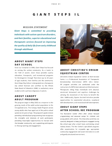 Chicagoland area. The Canopy Adult Program serves ABOUT GIANT STEPS