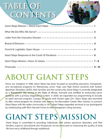 Giant Steps with the wider community. In 2017, Giant Steps expanded services to our participants
